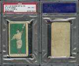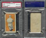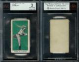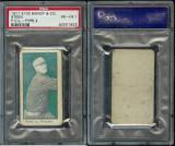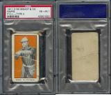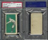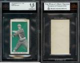 Extremely rare counterparts to the E100 Type I issue. Cards feature blanks backs, different croppings, sometimes reversed images (Hitt), and different typeface than the Type I examples. Only found in green and orange.